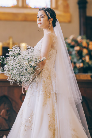 約200着の衣装ラインナップから運命の一着を。森の教会の結婚式に相応しい衣装をお選びいただけます。